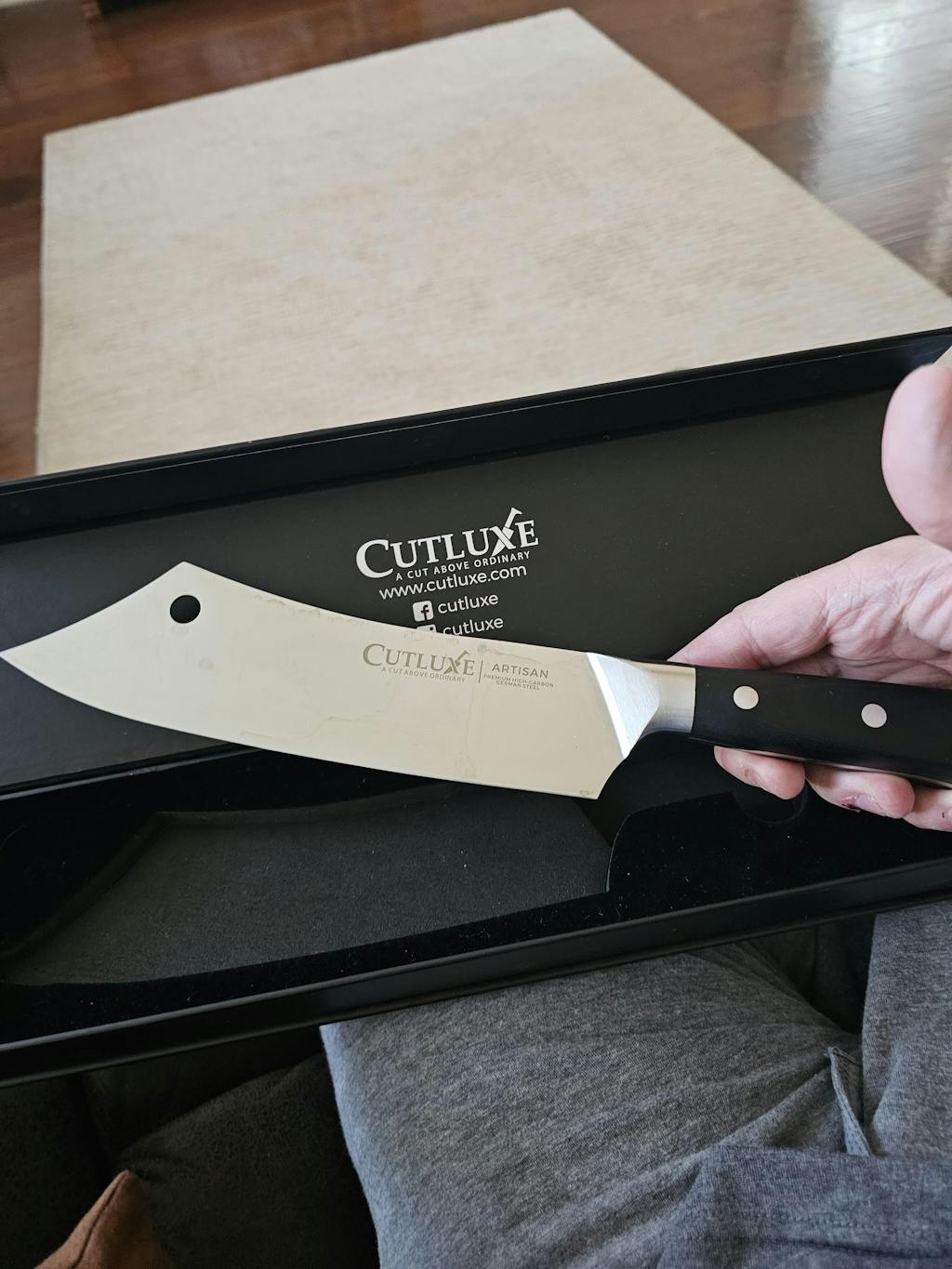 Love this knife, made very well,balanced feels very good in hand and very sharp. Excellent quality will definitely be a return customer to cutluxe when needing another knife