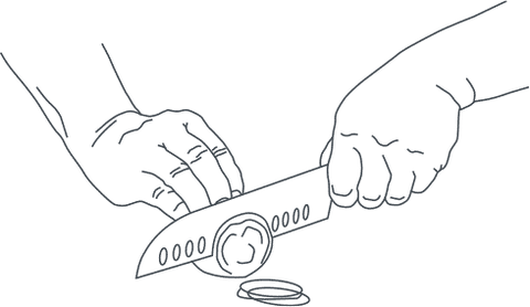 Guide the knife blade against the food with your free hand. Protect your fingertips by curling them inwards, using your knuckles to guide your knife.