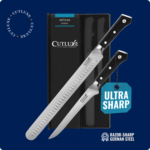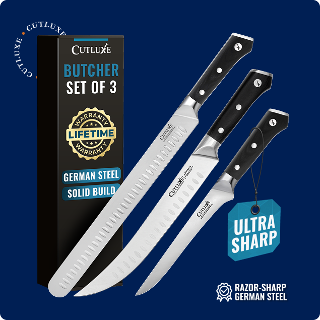 Cutluxe butcher knives offer exceptional balance, durable full-tang construction, and ergonomic handles for all-day comfort. Whether you're prepping brisket, lamb, or wild game, these knives make the job smoother and more efficient. The right knife doesn’t just cut, it transforms the way you prepare meat.