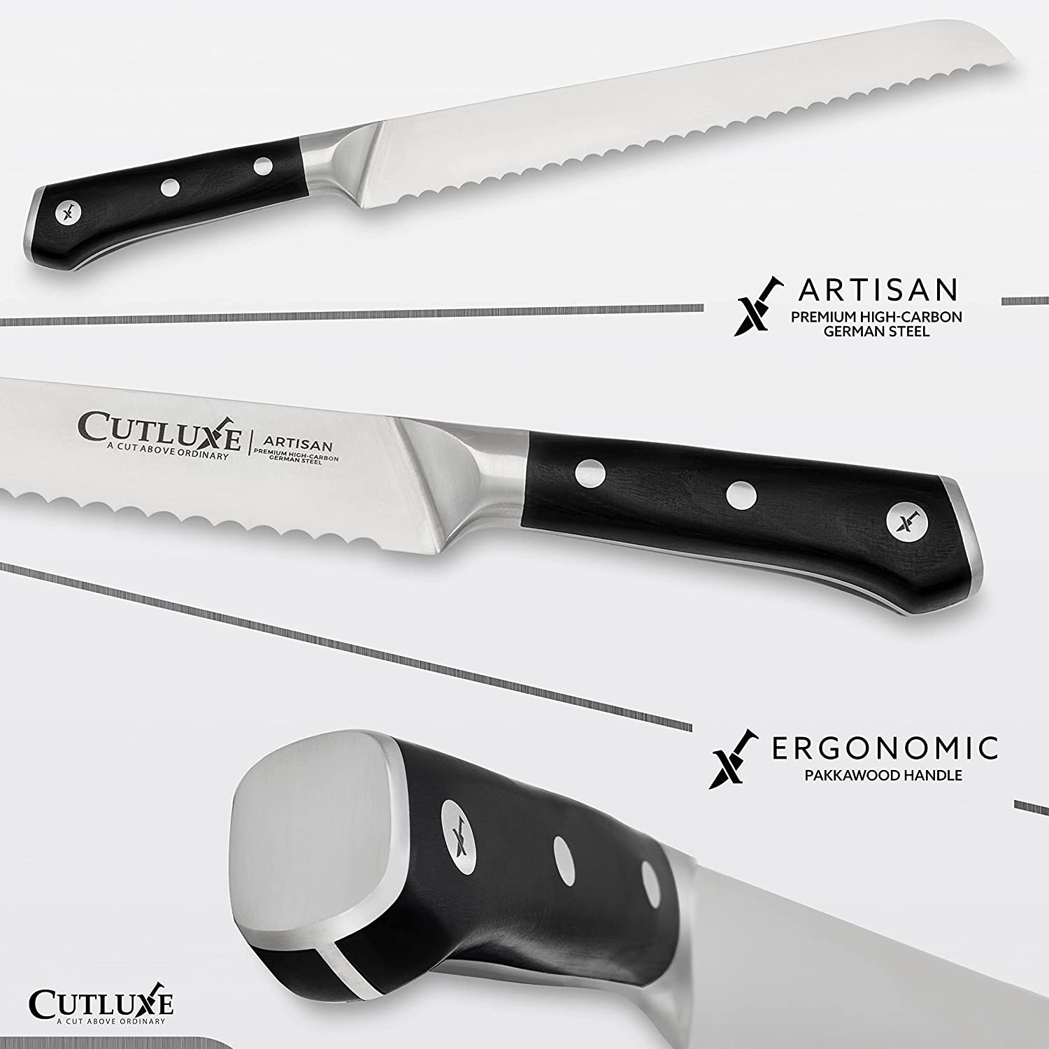 Looking for the ultimate bread knife that blends elegance, durability, and surgical precision? The Cutluxe Artisan Series 10-inch bread knives are engineered for smooth slicing without crushing or tearing your favorite baked goods. From crusty sourdough to soft brioche, these expertly crafted knives deliver bakery-perfect results at home. Their razor-sharp edge, premium steel, and ergonomic handle make them a must-have for every kitchen.