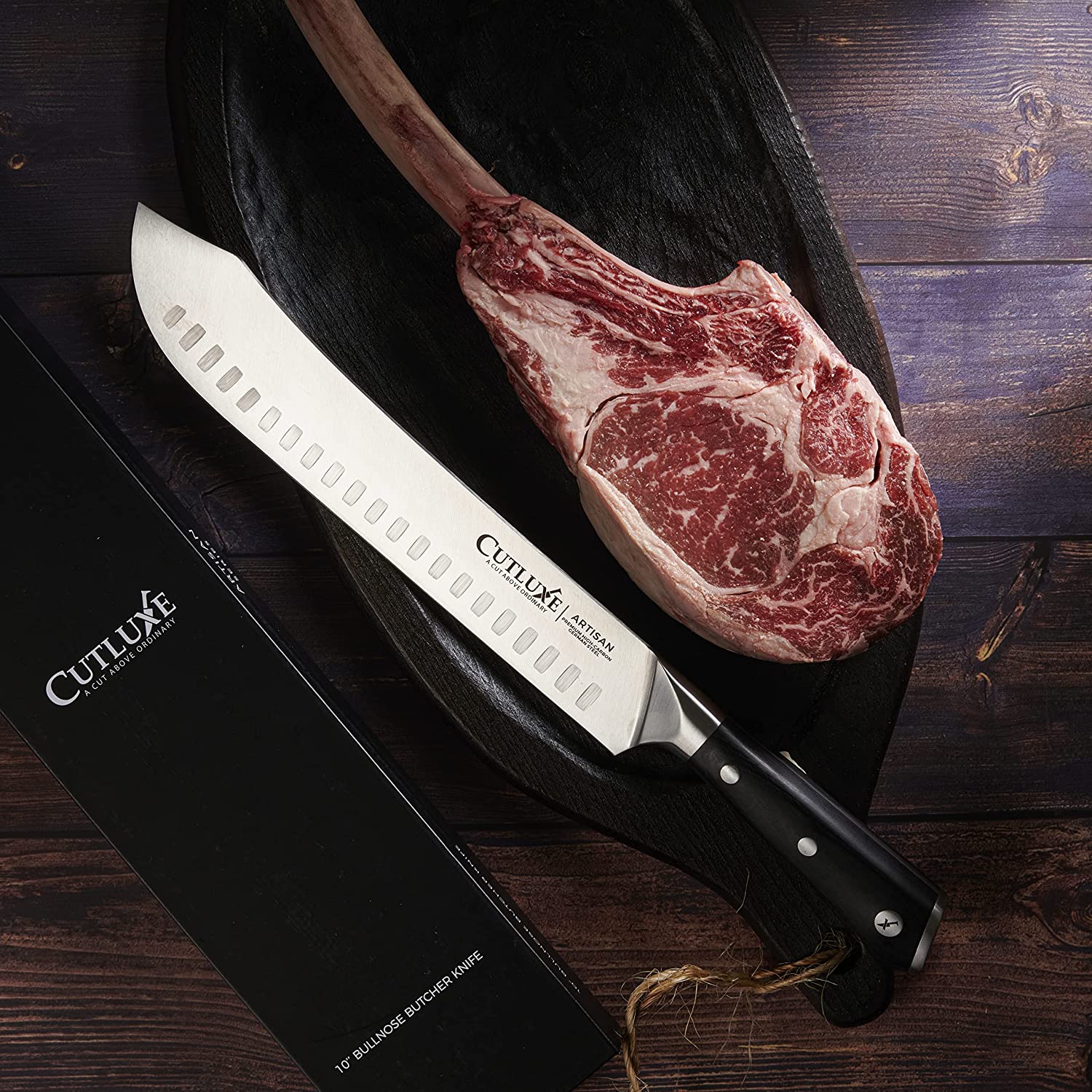 The Cutluxe 10″ Butcher Bullnose & Carving Knife