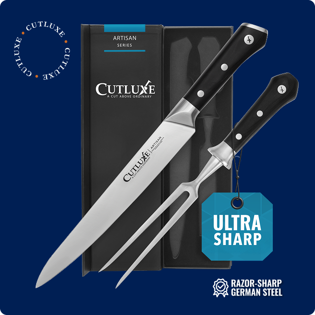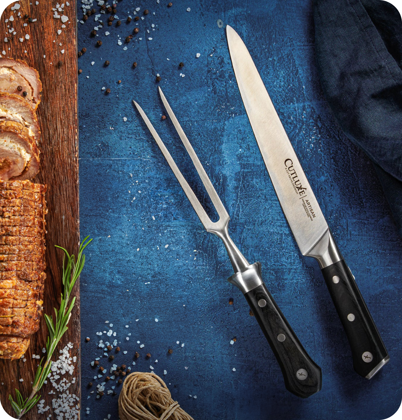 The Cutluxe 9" Carving Knife & 6" Carving Fork