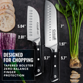 This 2-piece Santoku set isn’t just for looks — it’s for cooks who actually cook. Forged from high-carbon German steel, each knife is hand-sharpened and grooved for clean, friction-free slicing through meat, poultry, and vegetables. Full-tang with a solid pakkawood grip that sits right in the hand, these knives are stable, sharp, and downright satisfying. Built to last. Guaranteed for life. Just like the good old days.