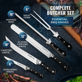This 5-piece set includes every blade a pitmaster needs: a 12” Brisket Slicer, 10” Cimeter, 6” Boning Knife, Carving Fork, and 10” Honing Rod. Built from high-carbon German steel with full-tang balance and Pakkawood handles, it’s made to break down primals, trim fat, slice brisket, and hold its edge along the way. No filler. Just the right tools for every cut. Trusted by pros. Gifted by BBQ lovers. Built to last.